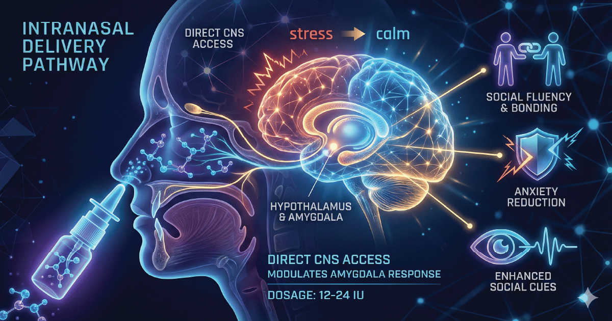 ⚠️ Disclaimer: Intranasal oxytocin is a prescription neuropeptide that has been studied in clinical and laboratory research, but many proposed uses remain investigational. While oxytocin is naturally produced in the body, using it as a nasal spray for "performance", "stress", or "social" goals is experimental and not a substitute for diagnosis or treatment.