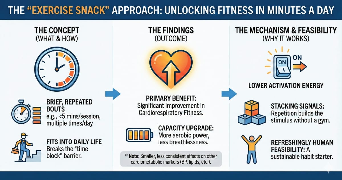 Exercise snacks are a fitness lever, not a full health reset.