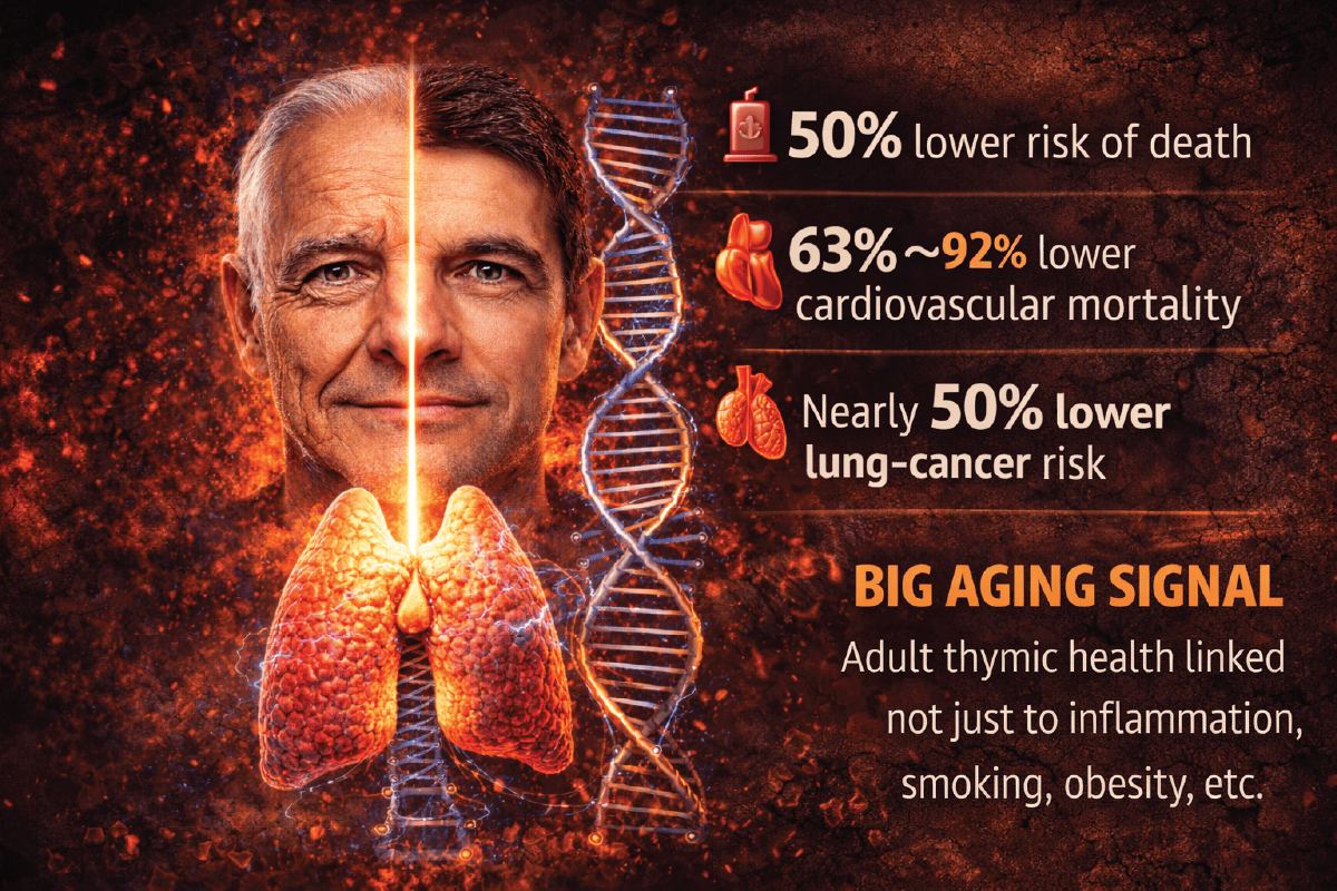 Most people think the thymus matters in childhood, then fades into irrelevance. A new Nature paper suggests that assumption may be badly outdated. Better adult thymic health was associated with lower all-cause mortality, lower cardiovascular mortality, and lower lung-cancer risk.